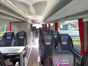 X-Sell a réalisé l’aménagement complet d’un car IRIZAR I6 pour le compte de la société TRANSDEV et au profit de l’équipe de basket féminine de l’ASVEL.